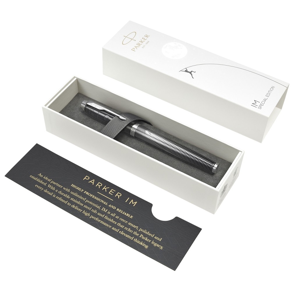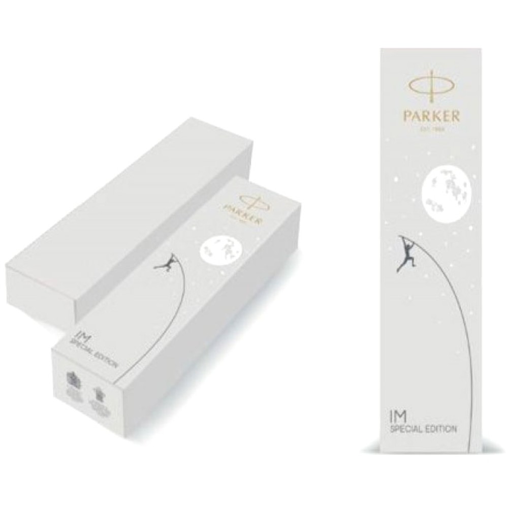 Специальное издание Parker Special Edition 2019 года в премиальной коллекции IM Premium посвящено стремлению человека к познанию космоса, далеких миров и нашего места во вселенной. Каждая серия ручек так или иначе связана с космической тематикой. Pursuit в переводе с английского означает "стремление", и новая серия ручек IM Premium Pursuit посвящена стремлению человека с давних времен познать глубины и секреты ночного неба. Корпус перьевой ручки Parker IM SE 2019 Metallic Pursuit украшен оригинальным темно-серым узором, а на колпачке нанесены изображения планет нашей Солнечной системы. Ручка поставляется в специальной подарочной коробке с изображением человека, пытающегося допрыгнуть до Луны. Эта уникальная серия предназначена для активных людей, увлекающихся современными технологиями, астрономией, космической тематикой, а также для всех, кто находится в поиске своего места в жизни, занимает активную жизненную позицию и постоянно стремится достигать новых вершин!